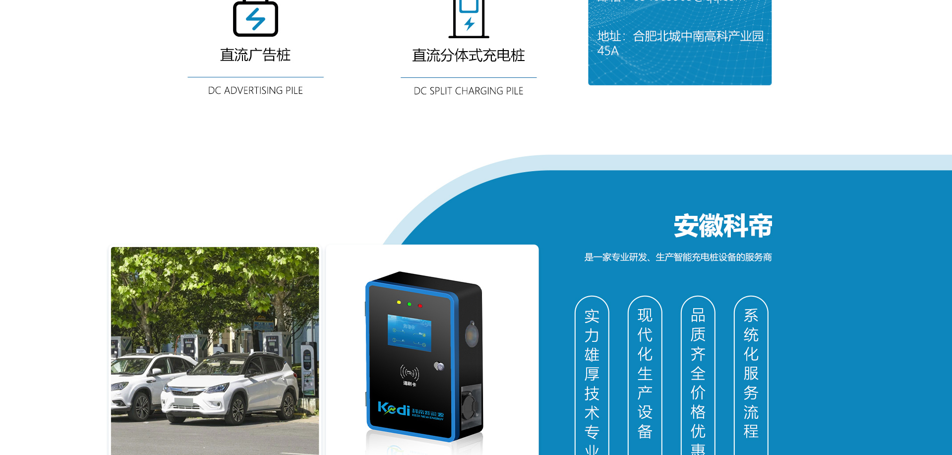 安徽科帝新能源科技有限公司坐落于安徽省會-合肥,是一家研發、生產智能充電樁設備,汽車充電站后臺監控管理系統和生產高壓開關設備的企業.由專門的研發團隊、管理團隊按照現代化企業制度規范設立的有限責任公司。致力于為能源智能、安全的應用和節能減排提供整體的技術與產品解決方案。科帝集研發、設計、生產、銷售以及服務于一體,在電動汽車充電方案,充電設施建設和城市配電方面擁有廣泛的技術研究及經驗積累,為客戶提供安全、智能的充電設備及充電運營站建設一體化解決方案。并堅持以人為本、質量為先、顧客至上、不斷創新”的企業理念,為能源行業的發展、節能減排做出重大的貢獻。公司擁有豐富的產品種類,目前科帝已研發生產了三十多種產品,充電設備有直流一體式充電樁、直流分體式充電樁、直流廣告樁、交流廣告樁、廣告一體樁、壁掛交直流樁;等多種充電設備;每一款產品都是精心打造,力求為客戶提供優越的用戶體驗。展望未來科帝將通過持續的自...